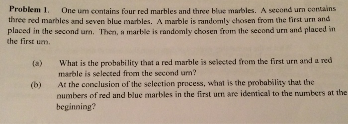 5 12 red 4 12 white 3 12 blue when the marble is returned to the urn two more marbles of the same color are added.